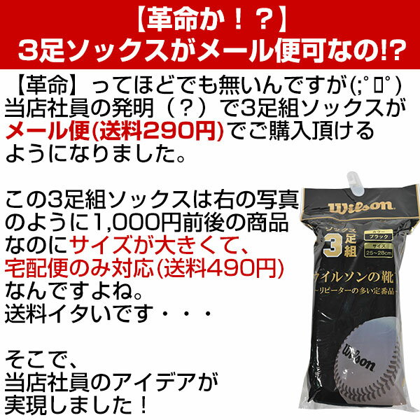 ↓ラッピング(290円/税込)のご注文はコチラ↓ 【検索ワード:ラッピング 贈りもの 贈り物 贈物 贈答品 プレゼント ギフト お祝い 記念品 卒業 卒団】 商品説明 厚手素材使用!ピッタリフィット!つま先、かかと補強! ●素材:綿・ポリエステル・ポリウレタン ●足数: 3足組(通常)/21〜24cm 3足組(通常)/25〜28cm ●カラー:ホワイト、ブラック、ネイビー ●3足組ベースボールソックス ※特価品のため返品、交換はお断りいたします。