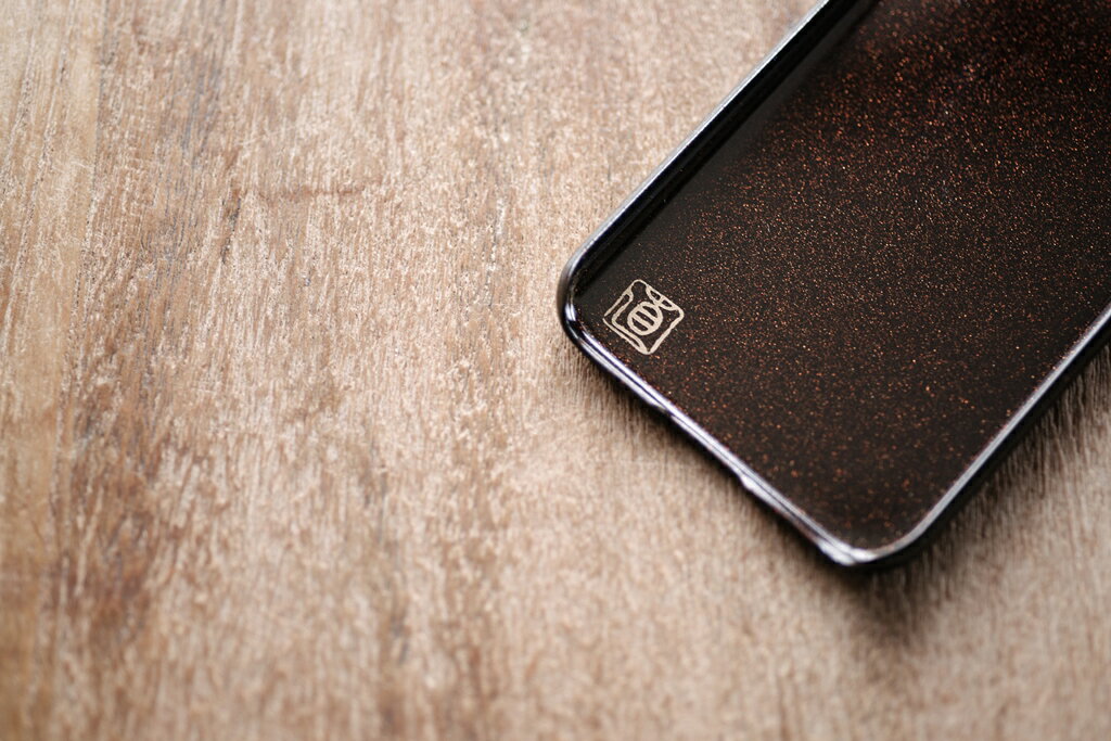 iPhone7 対応 漆塗カバーケース(白檀塗) 鳥獣戯画(ちょうじゅうぎが) 【白檀塗(びゃくだんぬり)】 銀で描いた蒔絵の上から透き漆をかけることで、 銀の模様がうっすらと金色に浮かび光り輝く伝統的な技法です。