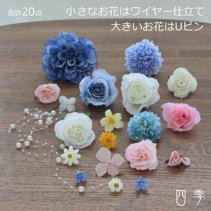 髪飾りに繊細でふんわりしたプリザーブドフラワーのかすみ草を加えると光の加減で印象が変わり、とても表情が豊かになります。